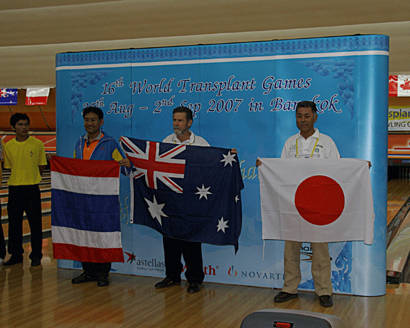 ボウリングでは、心臓移植者の松内さんが大健闘。まずシングルスで銅メダルを取ると、午後のダブルスでも仲里さんと組んで銅メダル。二つのメダルを獲得。今回は、3大会連続金メダルの野口さんが不参加で、金メダルはなりませんでしたが、心臓移植者として日本チームで初めてのメダルを獲得しました。バンザイ、バンザイ!!!